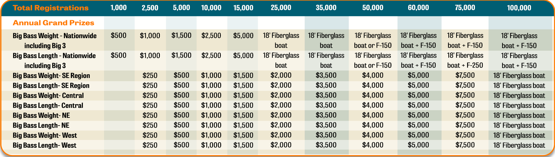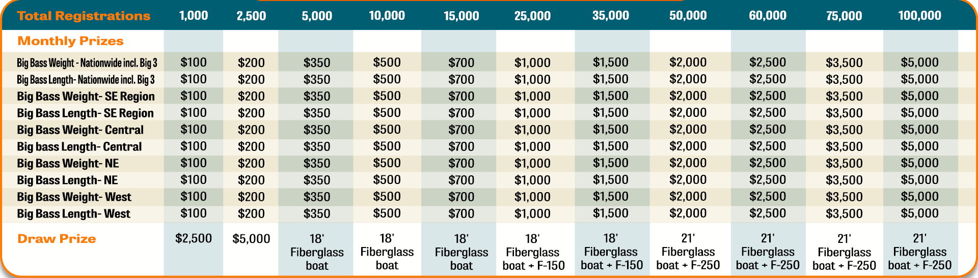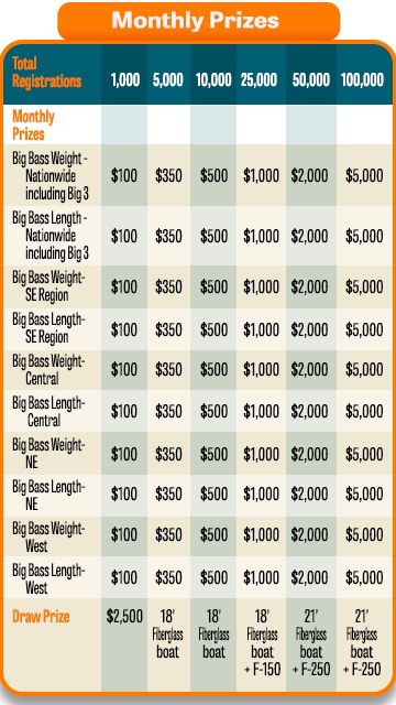 Catch a bass that qualifies anytime, anywhere, and you're instantly eligible for that month’s prizes.